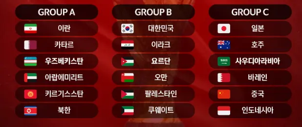 B조에서 피파랭킹 23위를 마크하는 한국이 가장 강력한 1위 후보로 평가받고 있으며 이라크의 원정경기만 잘 치르면 본선 진출은 쉽게 가능하지 않을까 하는 생각이 드네요.